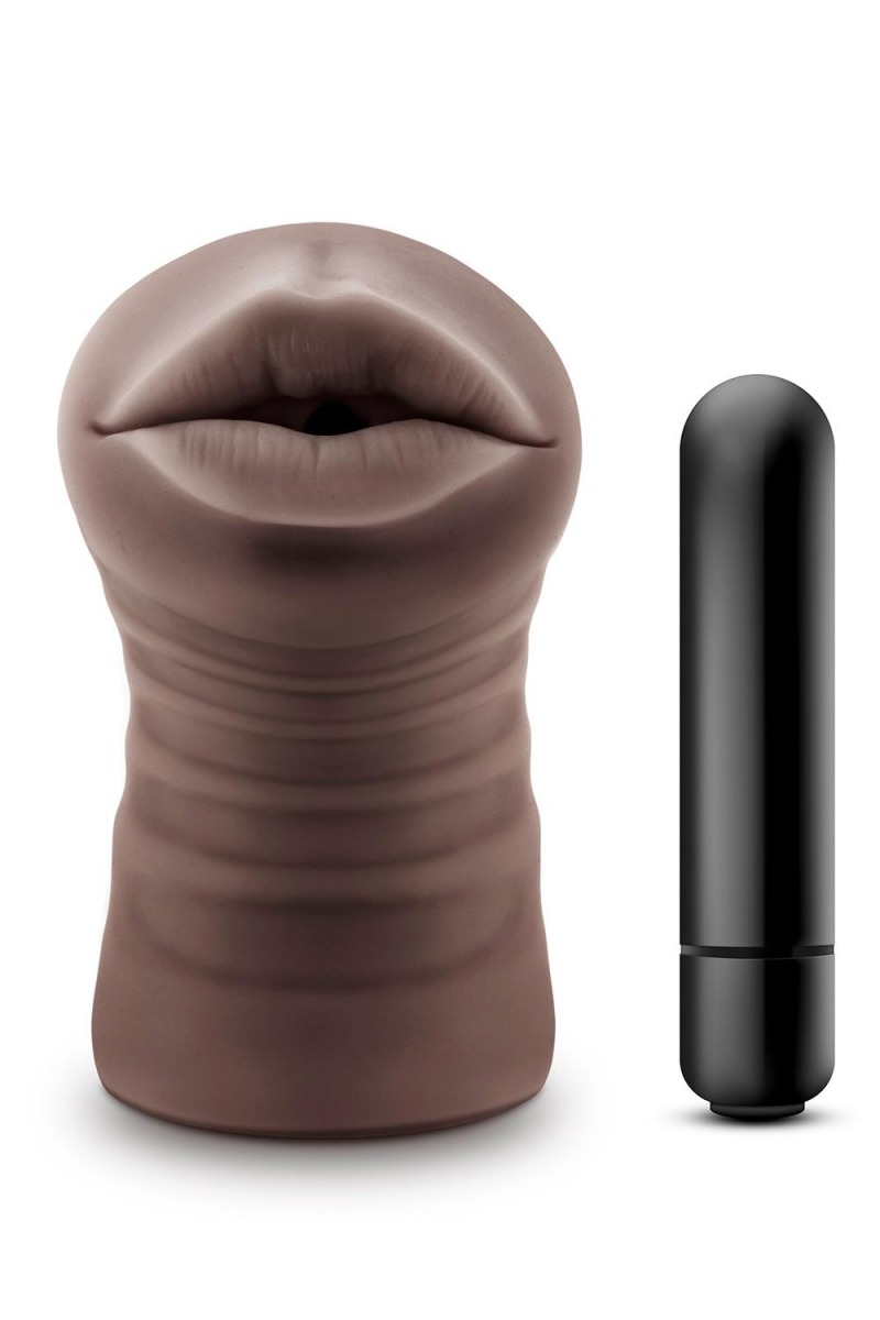 Коричневый мастурбатор-ротик Krystal Vibrating Masturbator. Тугой, с отверстием для вибропули (в комплекте).