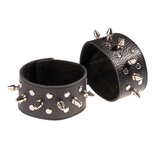 Изготовлены из натуральной кожи. При изготовлении использована никелированная фурнитура. Размер универсальный. Длина шипов - 1,2 см.