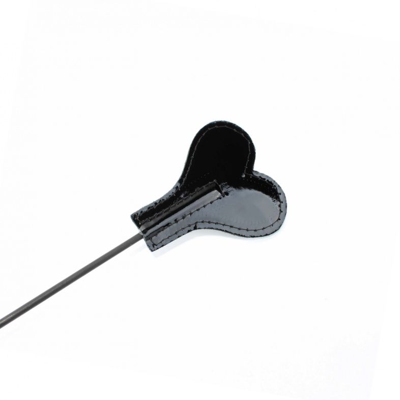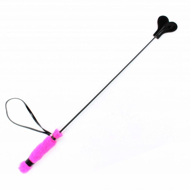 Стек сделан из прочного сердечника с оплеткой из меха. Оформлен БДСМ девайс наконечником в виде сердечка из лаковой кожи для осуществления ударов. Также на ручке присутствует кожаная петля, которая позволяет закрепить стек при проведении наказания партнёра. Девайс отлично подходит для БДСМ игр. Мягкая и гибкая конструкция позволяет избежать повреждений тела даже при сильных ударах. Хлопушка сделана из лаковой кожи, рукоятка стека жёсткая, обшита мехом розового цвета и имеет петлю для фиксации. Ширина хлопушки - 6,5 см.