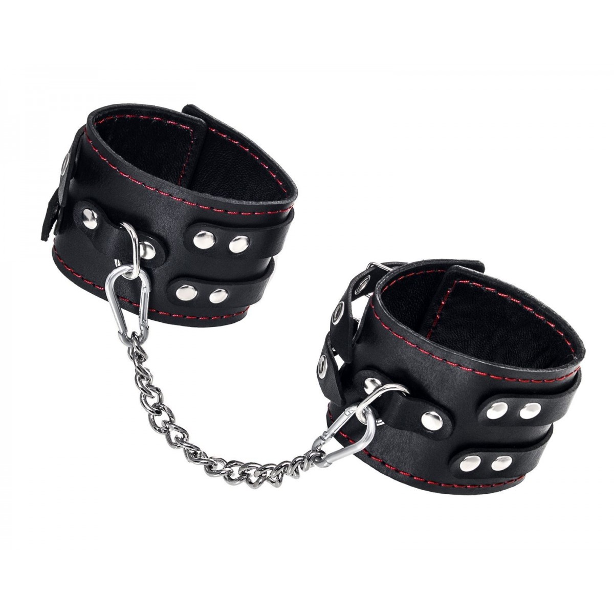 Эти кожаные оковы с двумя ремнями и чёрной подкладкой могут стать стильным аксессуаром, а могут послужить вашим целям по своему прямому назначению. Частичное обездвиживание и невозможность двигать руками или ногами дают вам полную власть над партнером – взрослые игры для взрослых. Наличие двух колец и карабинов, соединенных между собой металлической цепочкой, позволяет использовать изделие как раздельно – аксессуар-манжеты, так и как оковы для фиксации. К широким металлическим кольцам также можно присоединить и другие аксессуары при помощи карабинов. Благодаря универсальному размеру оковы могут использоваться и мужчинами, и женщинами. Размер легко регулируется с помощью металлических пряжек, органично вписывающихся в общий стиль. Длина манжет - 25 см, ширина - 7 см. Длина сцепки - 20 см.
