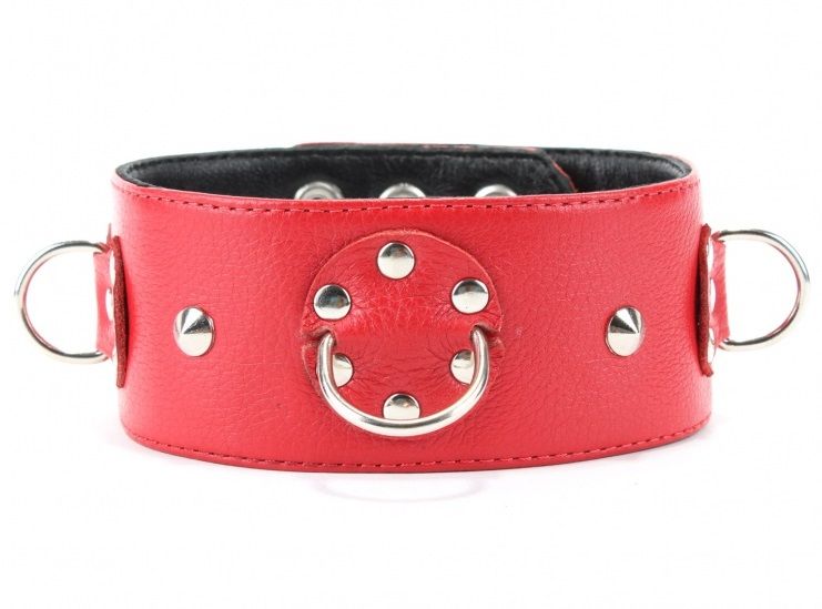 Красный кожаный ошейник с шипами.